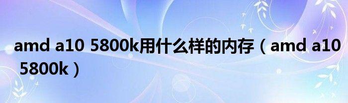 amd a10 5800k用什么样的内存(amd a10 5800k)