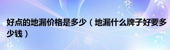 好点的地漏价格是多少(地漏什么牌子好要多少钱)