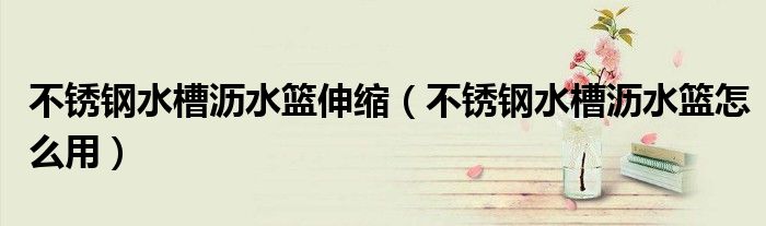 hello,我是51房产的小叶子,不少朋友对于不锈钢水槽沥水篮伸缩,不锈钢水槽沥水篮怎么用还不是很清楚,接下来我给大家说一说
