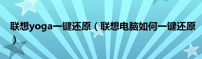 联想yoga一键还原(联想电脑如何一键还原)