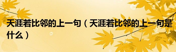 导读 大家好,阿郎来为大家解答以上问题。天涯若比邻的上一句,天涯若比邻的上一句是什么很多人还不知道,现在让我们一起来看看吧!
