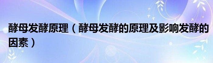 导读 大家好,阿郎来为大家解答以上问题。酵母发酵原理,酵母发酵的原理及影响发酵的因素很多人还不知道,现在让我们一起来看看吧!