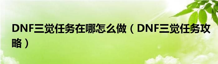 DNF三觉任务在哪怎么做(DNF三觉任务攻略)