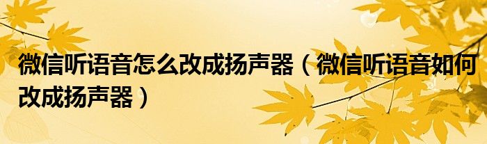 微信听语音怎么改成扬声器(微信听语音如何改成扬声器)