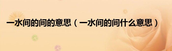 导读 大家好,阿郎来为大家解答以上问题。一水间的间的意思,一水间的间什么意思很多人还不知道,现在让我们一起来看看吧!
