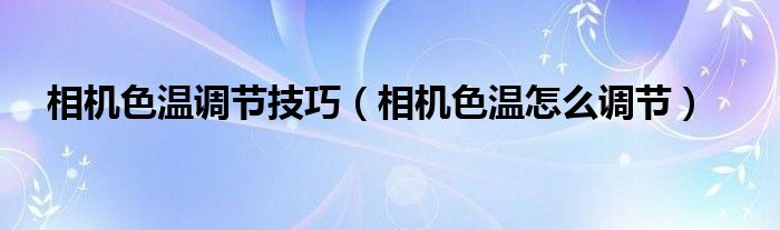 导读 大家好,阿郎来为大家解答以上问题。相机色温调节技巧,相机色温怎么调节很多人还不知道,现在让我们一起来看看吧!