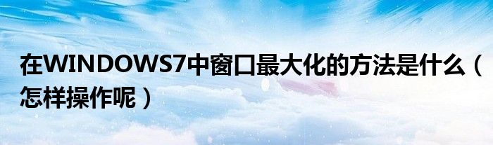 导读 大家好,阿郎来为大家解答以上问题。在WINDOWS7中窗口最大化的方法是什么,怎样操作呢很多人还不知道,现在让我们一起来看看吧!