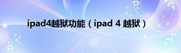 大家好,麟非来为大家解答以上问题,ipad4越狱功能,ipad 4 越狱很多人还不知道,现在让我们一起来看看吧!