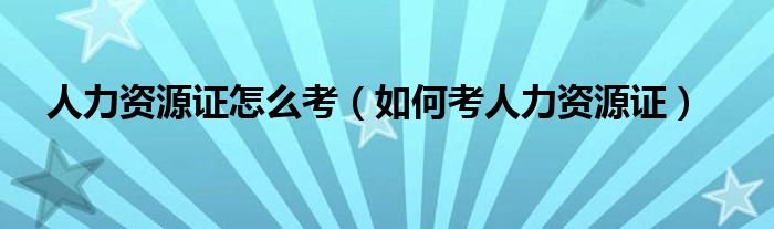 人力资源证怎么考(如何考人力资源证)