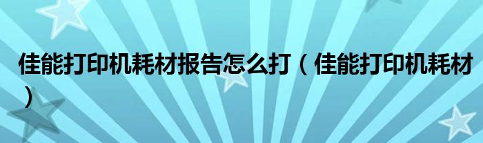 佳能打印机耗材报告怎么打(佳能打印机耗材)