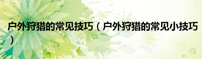 户外狩猎的常见技巧(户外狩猎的常见小技巧)