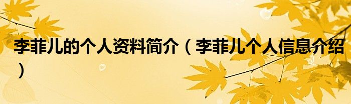 李菲儿的个人资料简介(李菲儿个人信息介绍)