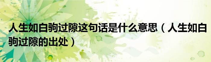导读 大家好,阿郎来为大家解答以上问题。人生如白驹过隙这句话是什么意思,人生如白驹过隙的出处很多人还不知道,现在让我们一起来看看吧!
