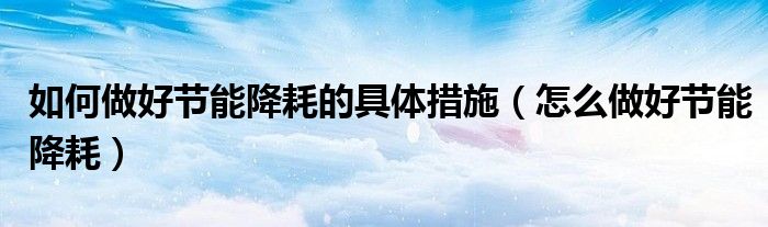 如何做好节能降耗的具体措施(怎么做好节能降耗)