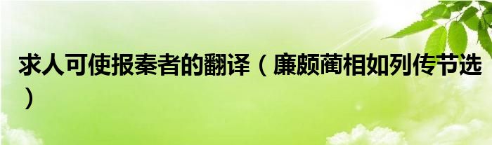 大家好,阿郎来为大家解答以上问题。求人可使报秦者的翻译,廉颇蔺相如列传节选很多人还不知道,现在让我们一起来看看吧!