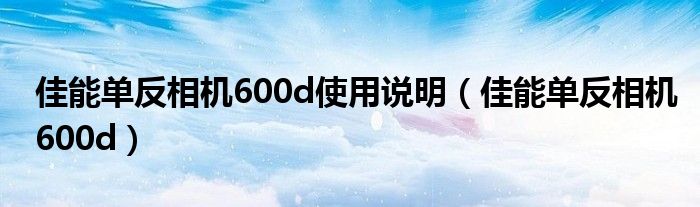佳能单反相机600d使用说明(佳能单反相机600d)