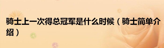 大家好,阿郎来为大家解答以上问题。骑士上一次得总冠军是什么时候,骑士简单介绍很多人还不知道,现在让我们一起来看看吧!