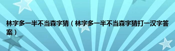 林字多一半不当森字猜(林字多一半不当森字猜打一汉字答案)