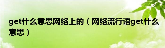 导读 大家好,阿郎来为大家解答以上问题。get什么意思网络上的,网络流行语get什么意思很多人还不知道,现在让我们一起来看看吧!