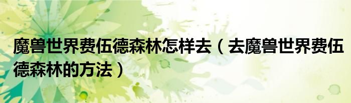 魔兽世界费伍德森林怎样去(去魔兽世界费伍德森林的方法)