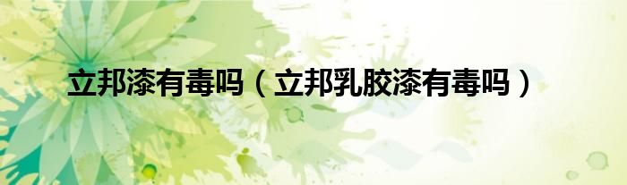 立邦漆有毒吗(立邦乳胶漆有毒吗)