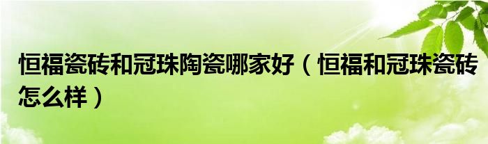 恒福瓷砖和冠珠陶瓷哪家好(恒福和冠珠瓷砖怎么样)
