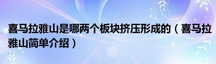 喜马拉雅山是哪两个板块挤压形成的(喜马拉雅山简单介绍)