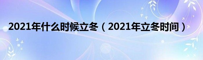 导读 大家好,阿郎来为大家解答以上问题。2021年什么时候立冬,2021年立冬时间很多人还不知道,现在让我们一起来看看吧!