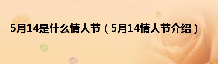 导读 大家好,阿郎来为大家解答以上问题。5月14是什么情人节,5月14情人节介绍很多人还不知道,现在让我们一起来看看吧!