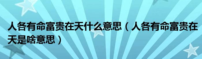 人各有命富贵在天什么意思(人各有命富贵在天是啥意思)