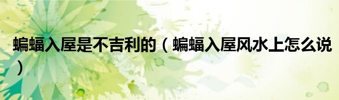导读 大家好,阿郎来为大家解答以上问题。蝙蝠入屋是不吉利的,蝙蝠入屋风水上怎么说很多人还不知道,现在让我们一起来看看吧!