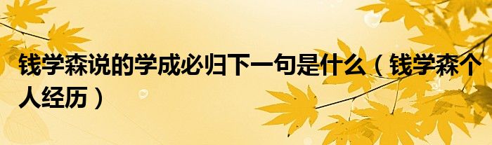 导读 大家好,阿郎来为大家解答以上问题。钱学森说的学成必归下一句是什么,钱学森个人经历很多人还不知道,现在让我们一起来看看吧!
