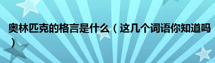 奥林匹克的格言是什么(这几个词语你知道吗)