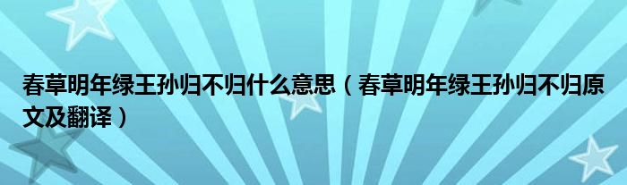 导读 大家好,阿郎来为大家解答以上问题。春草明年绿王孙归不归什么意思,春草明年绿王孙归不归原文及翻译很多人还不知道,现在让我们一起来看看