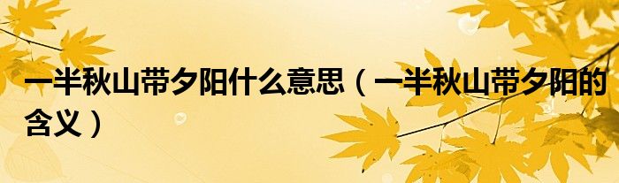 导读 大家好,阿郎来为大家解答以上问题。一半秋山带夕阳什么意思,一半秋山带夕阳的含义很多人还不知道,现在让我们一起来看看吧!