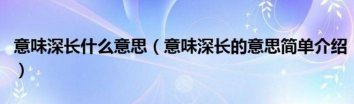 导读 大家好,阿郎来为大家解答以上问题。意味深长什么意思,意味深长的意思简单介绍很多人还不知道,现在让我们一起来看看吧!