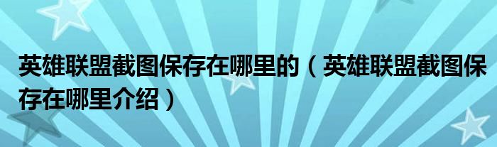 英雄联盟截图保存在哪里的(英雄联盟截图保存在哪里介绍)