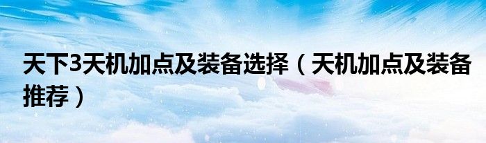 天下3天机加点及装备选择(天机加点及装备推荐)