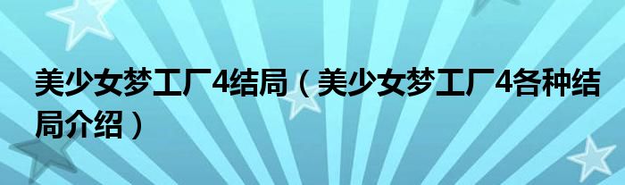 导读 大家好,阿郎来为大家解答以上问题。美少女梦工厂4结局,美少女梦工厂4各种结局介绍很多人还不知道,现在让我们一起来看看吧!