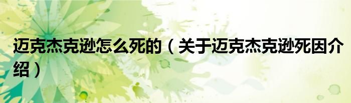 迈克杰克逊怎么死的(关于迈克杰克逊死因介绍)