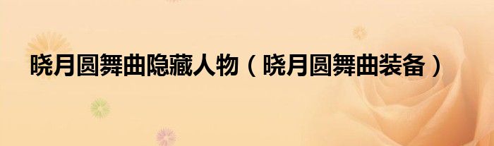 晓月圆舞曲隐藏人物(晓月圆舞曲装备)