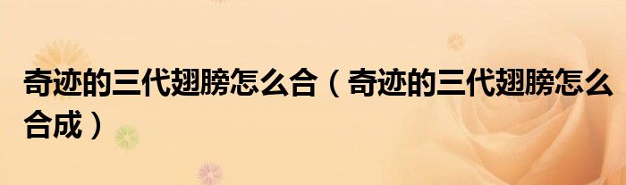 奇迹的三代翅膀怎么合(奇迹的三代翅膀怎么合成)