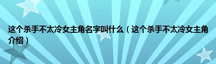 这个杀手不太冷女主角名字叫什么(这个杀手不太冷女主角介绍)