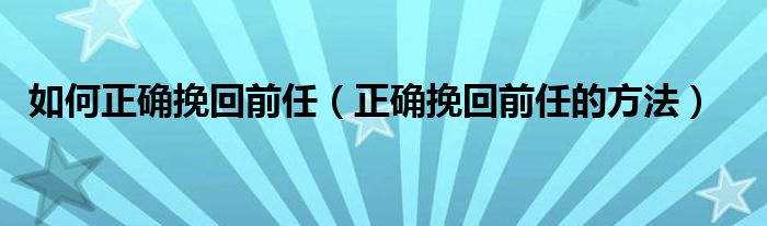 如何正确挽回前任(正确挽回前任的方法)
