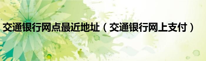 大家好,麟非来为大家解答以上问题,交通银行网点最近地址,交通银行网上支付很多人还不知道,现在让我们一起来看看吧!