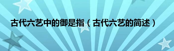 大家好,阿郎来为大家解答以上问题。古代六艺中的御是指,古代六艺的简述很多人还不知道,现在让我们一起来看看吧!