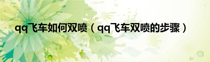 qq飞车如何双喷(qq飞车双喷的步骤)