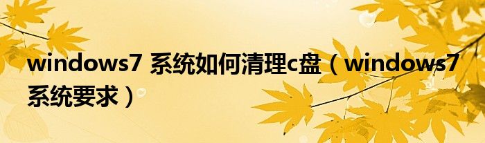 windows7 系统如何清理c盘(windows7 系统要求)
