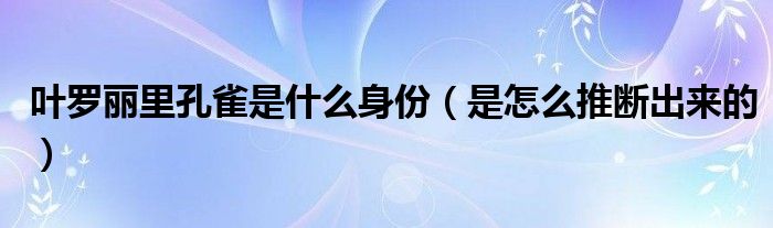 叶罗丽里孔雀是什么身份(是怎么推断出来的)