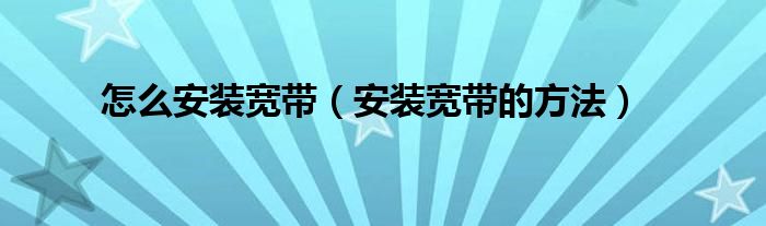 怎么安装宽带(安装宽带的方法)